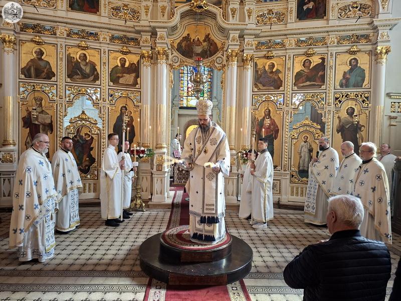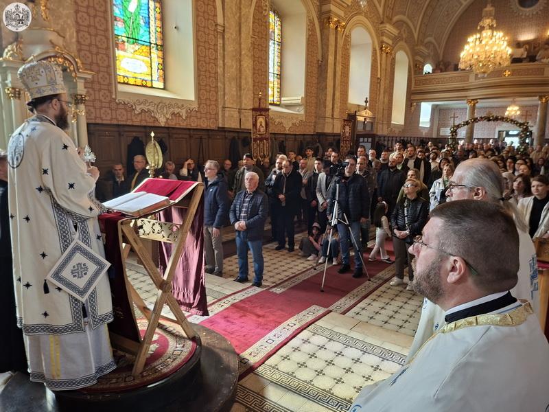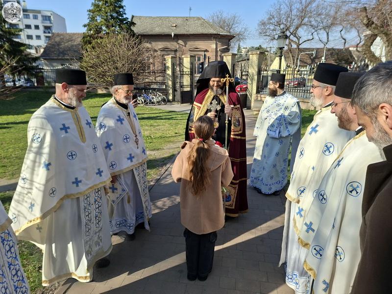 У Крстопоклону недељу, 2/15. марта 2026. године, Његово Преосвештенство Епископ мохачки господин Дамаскин је началствовао на светој архијерејској Литургији у храму Вазнесења Господњег у Суботици, уз саслужење суботичког свештенства.