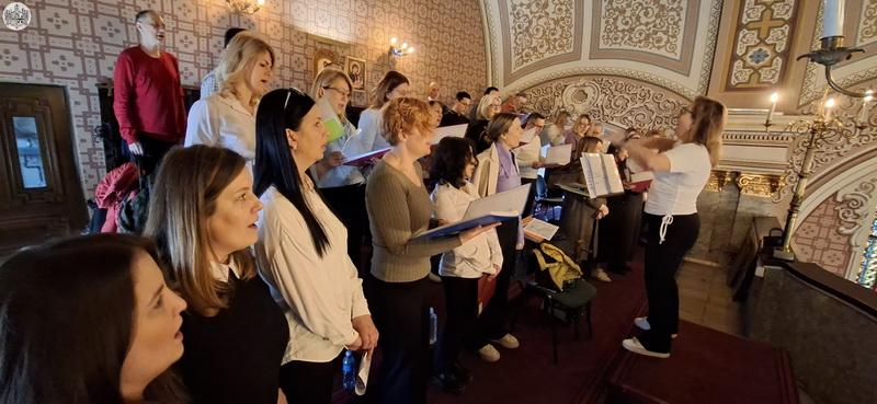 На светој Литургији су појали чланови Црквеног хора „Свети Роман Мелодˮ при Световазнесенском храму, којим диригује професор Драгана Николић, и полазнице Школе црквеног појања „Свети Јован Дамаскинˮ из Суботице.