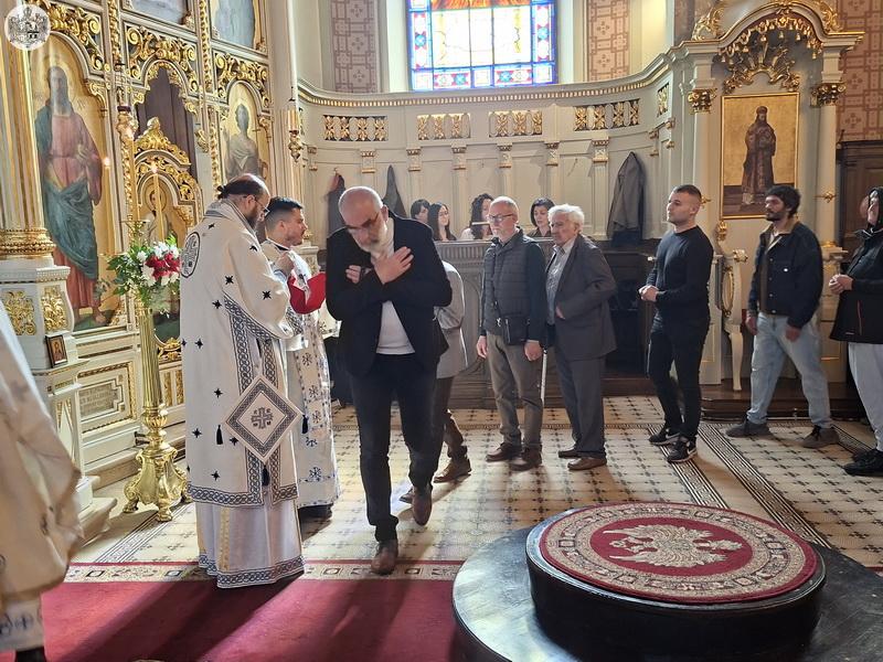 Беседећи после прочитаног јеванђелског одељка, Преосвећени епископ Дамаскин је сабраним верницима указао на то да је Црква одредила да се треће недеље Великог поста клањамо Часном Крсту ради помоћи, охрабрења и утврђења у подвигу поста. „Ако имамо жељу само да сачувамо овај свој привремени живот, и у њему гледамо на разне наше успехе или добитке, који су мимо Христа, изгубићемо и овај смртни живот, а и онај бесмртни. Али, ако, драга браћо и сестре, све што чинимо у нашем животу, не чинимо у нашу славу или за нашу славу, него чинимо из љубави према Богу, ако је Христос најважније и једино мерило у нашем животу, ако на Њему гајимо свој идентитет, ако је Он средиште нашега живота, онда и наш живот добија један сасвим други смисао, добија вечни смисао. И управо ту и такву љубав Божју ми управо и откривамо на овој светој и божанственој Литургији, јер ту нам се Господ несебично даје, даје нам Своје Тело и даје нам Своју Крв, да се не само духовно него и телесно сјединимо са Њим и да управо овде на светој Литургији предокушавамо то Царство Божје које ће доћи у сили и у слави, када Христос дође по други путˮ, истакао је владика Дамаскин.