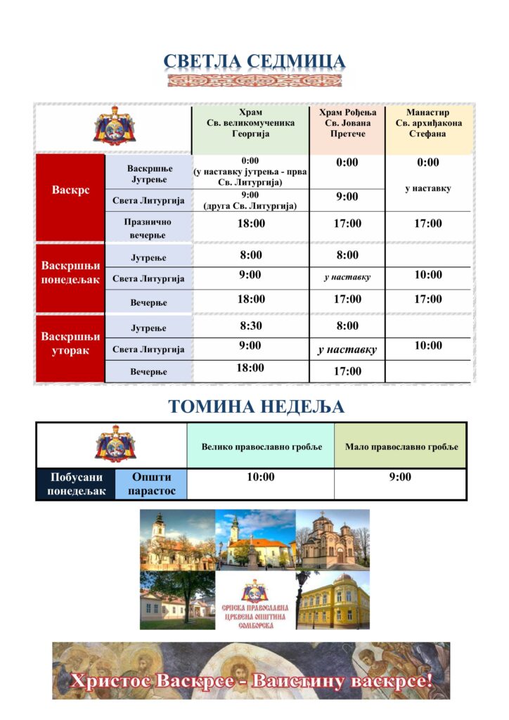 • РАСПОРЕД БОГОСЛУЖЕЊА