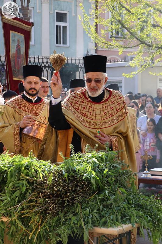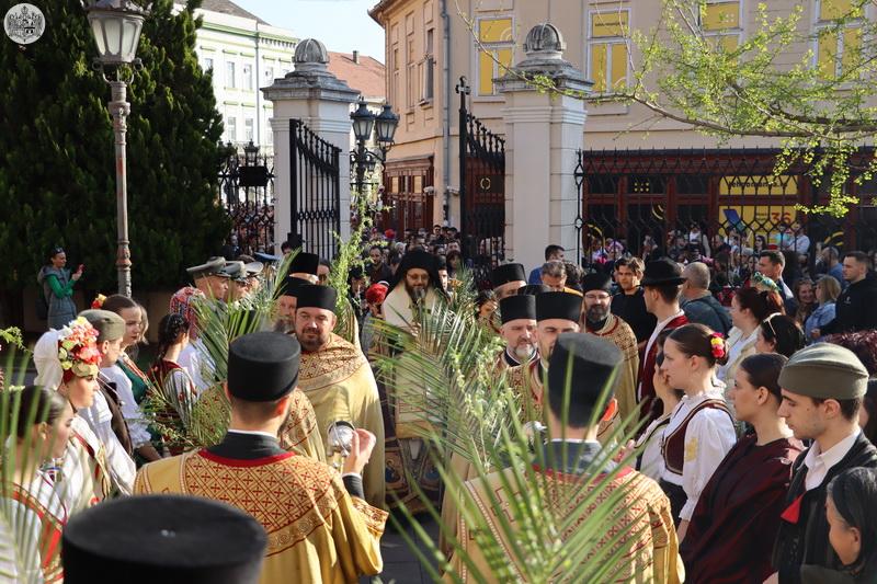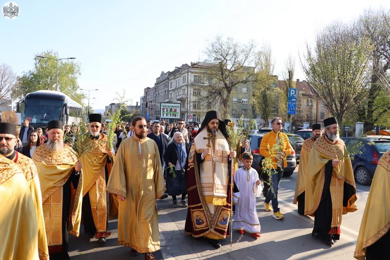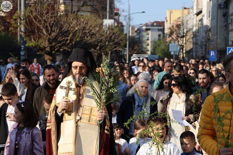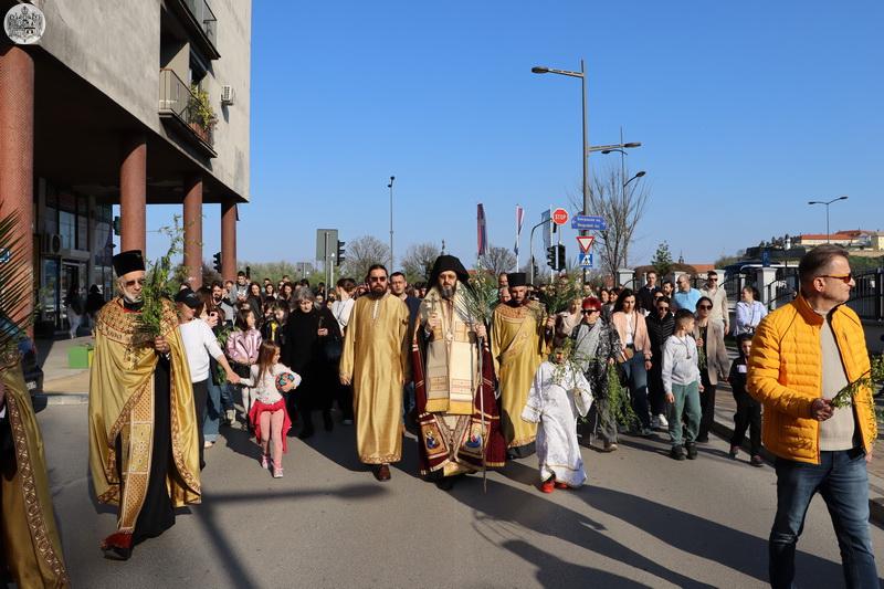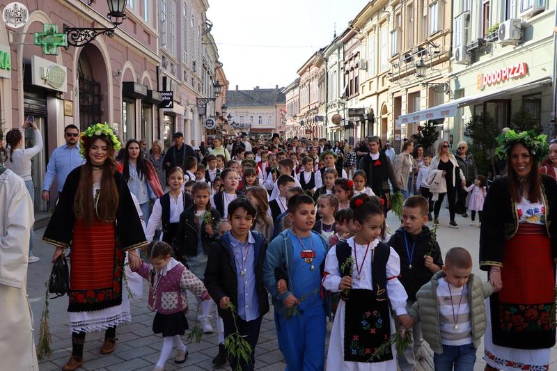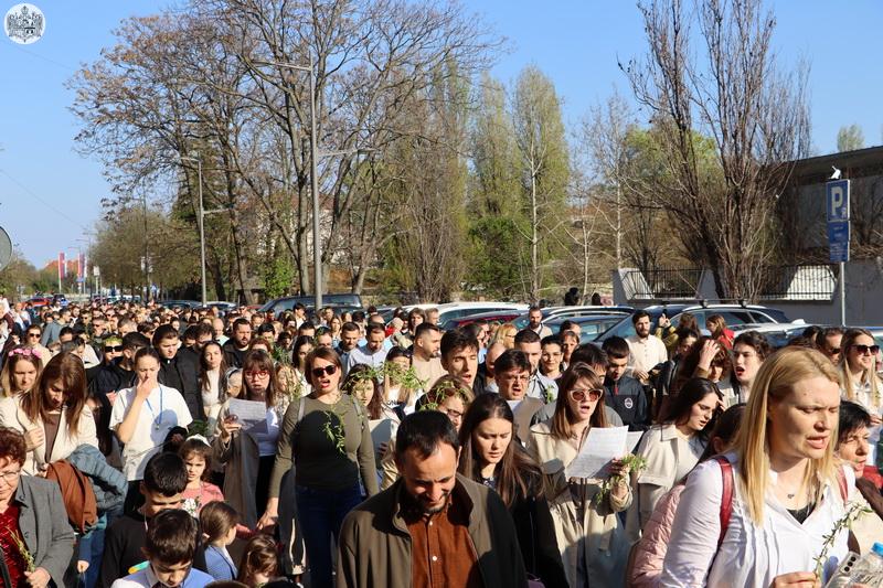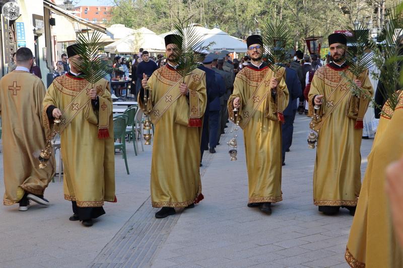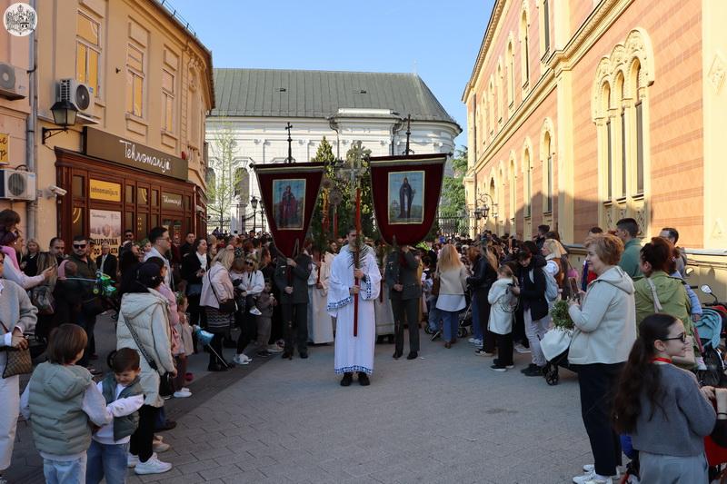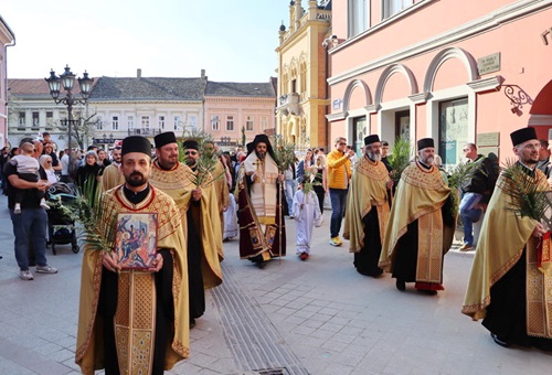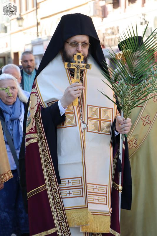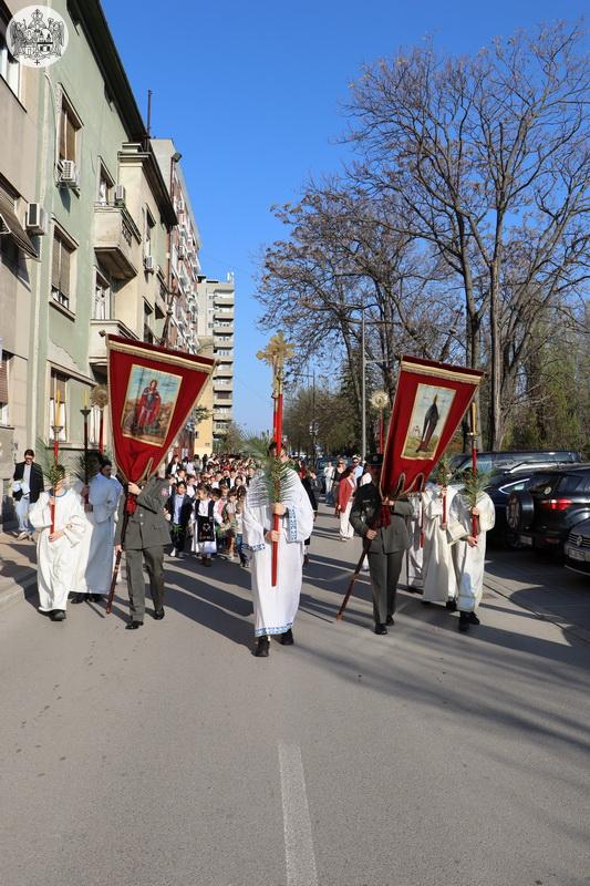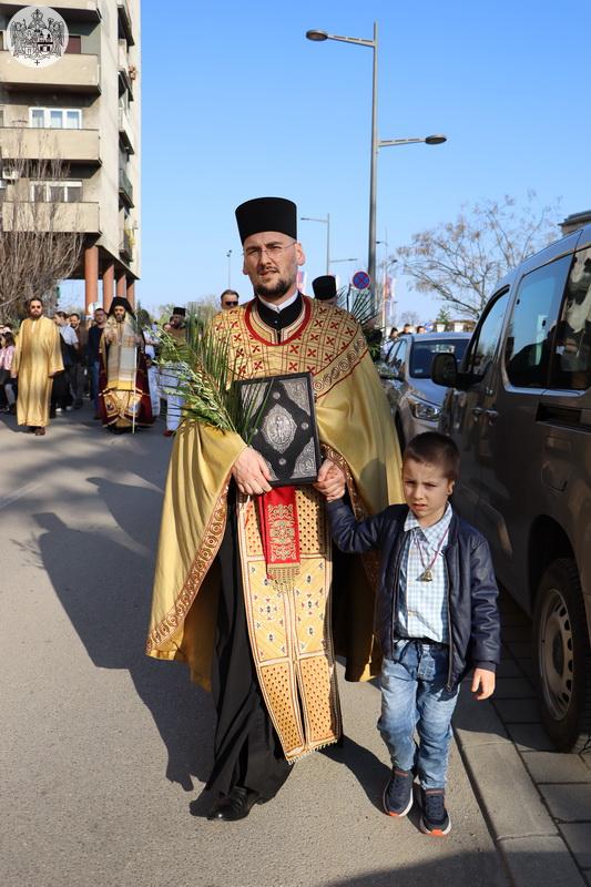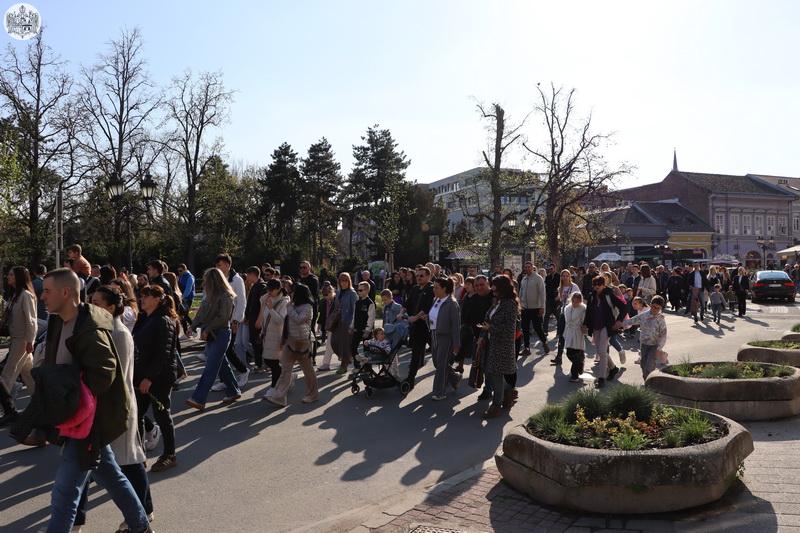 Литију свештенства и верног народа Божјег предводио је Епископ мохачки г. Дамаскин, викар Митрополита бачког. После литије, у Саборном храму је служено бденије уочи празника Уласка Христовог у Јерусалим – Цвети, у молитвеном присуству Епископа мохачког г. Дамаскина.
