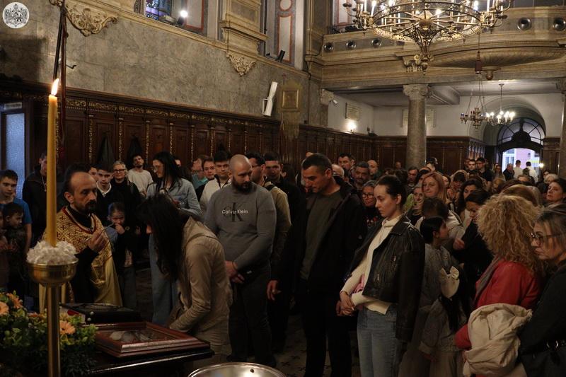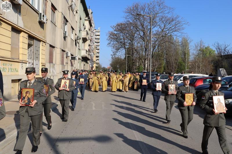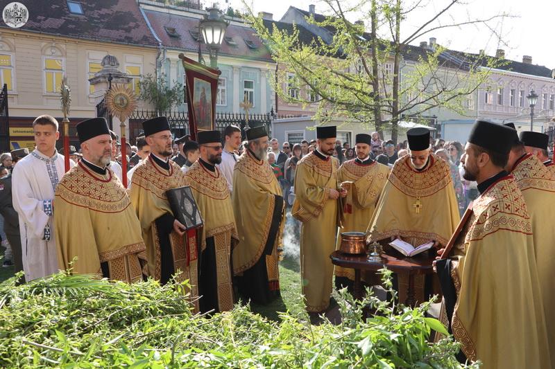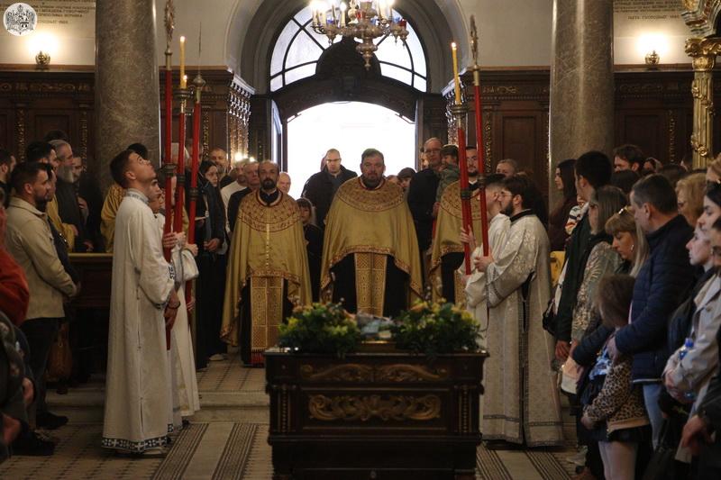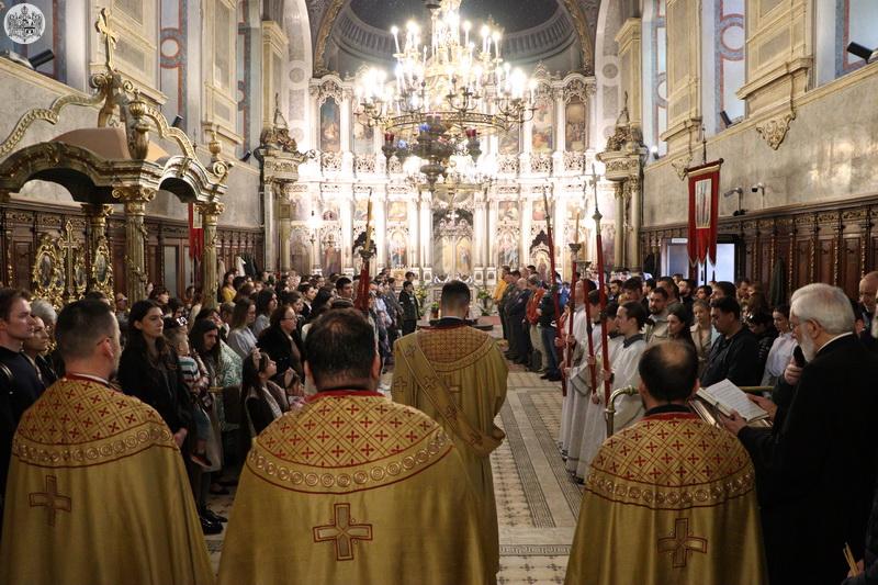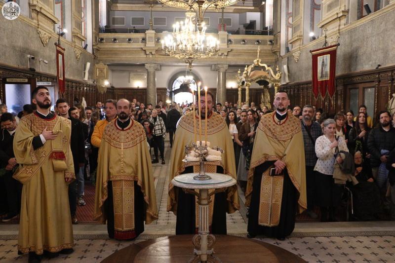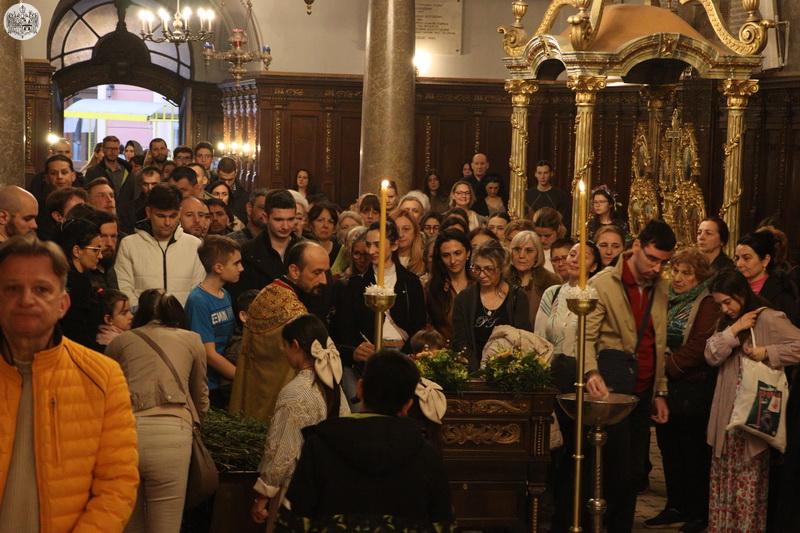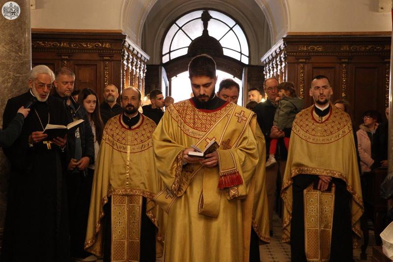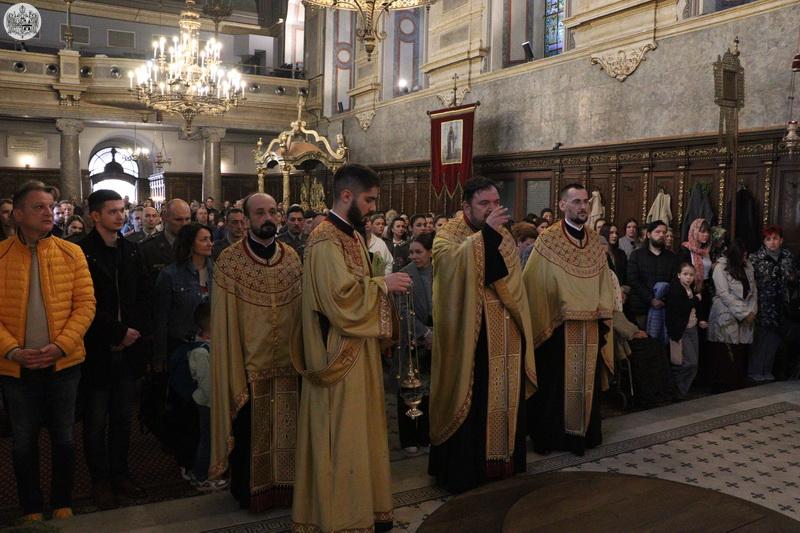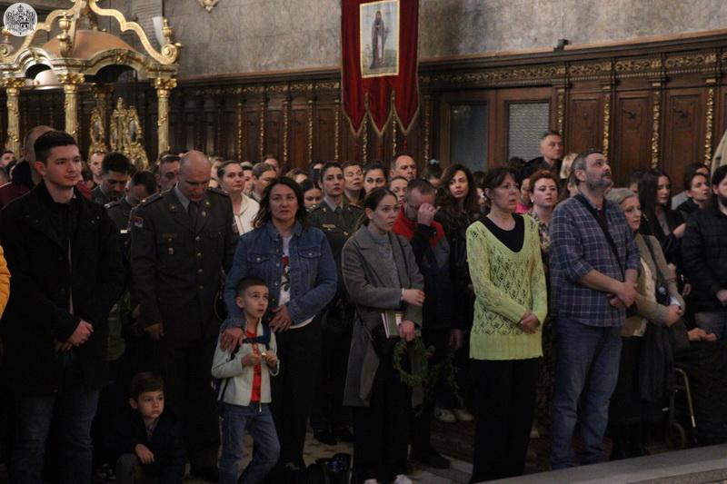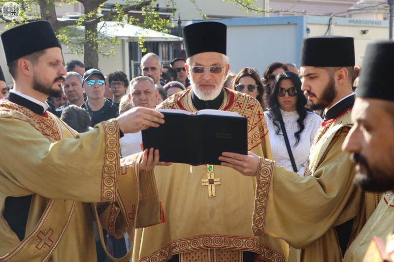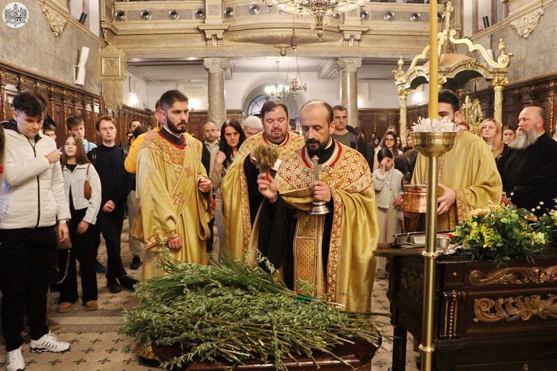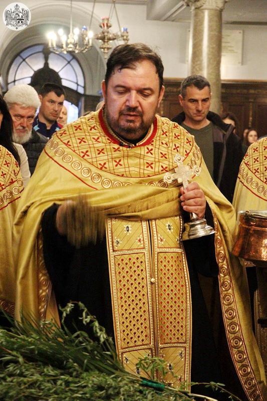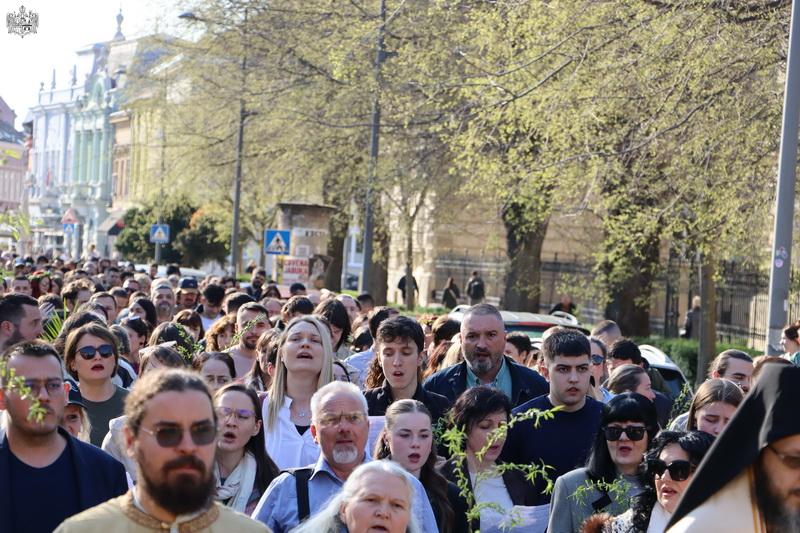 Литију свештенства и верног народа Божјег предводио је Епископ мохачки г. Дамаскин, викар Митрополита бачког. После литије, у Саборном храму је служено бденије уочи празника Уласка Христовог у Јерусалим – Цвети, у молитвеном присуству Епископа мохачког г. Дамаскина.