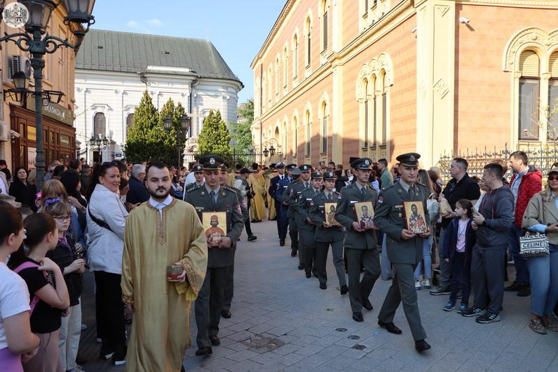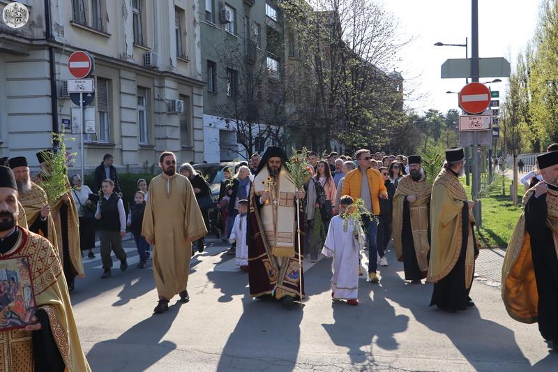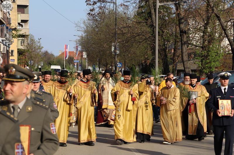 Богослужбена прослава Лазареве суботе у Саборном храму у Новом Саду почела је 22. марта/4. априла 2026. године служењем празничног јутрења и свете Литургије. Прослављање празника је настављено у поподневним часовима, чином освећења врбових гранчица и свечаном литијом, уз учешће представникâ Војске Србије, чланова Културно-уметничког друштва ,,Вилаˮ, хора ,,Свети Георгијеˮ при Саборном храму у Новом Саду и многобројног верног народа Божјег. Литија се кретала од Саборног храма кроз улице: Дунавску, Београдски кеј, Милоша Бајића, Даничићеву и Гимназијску.