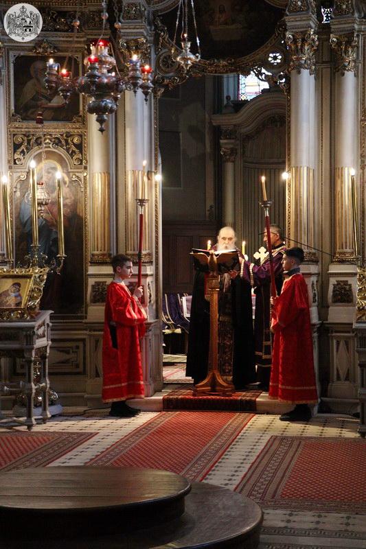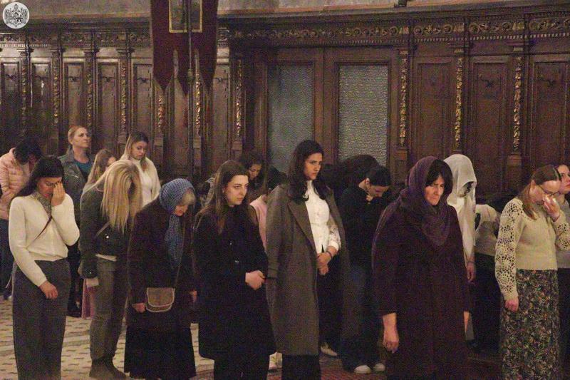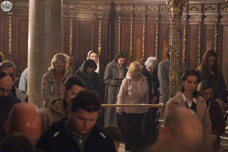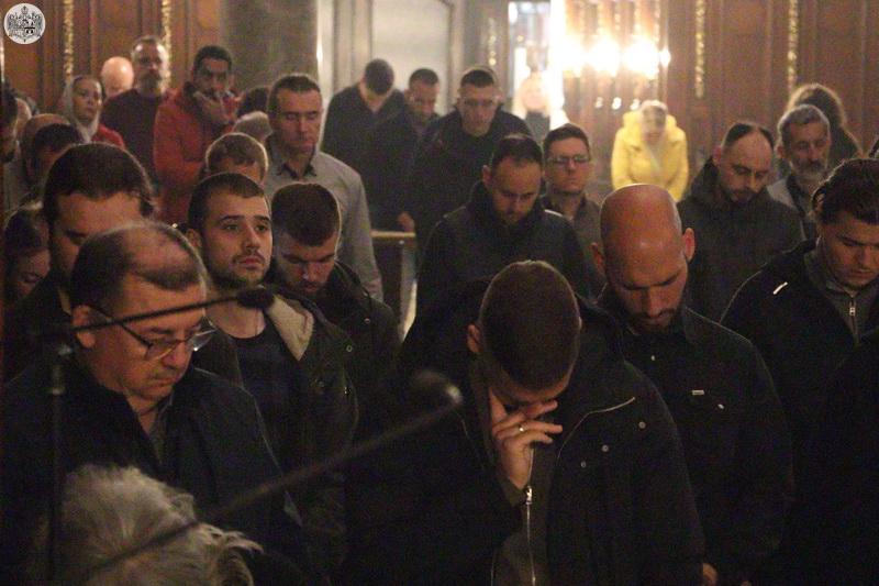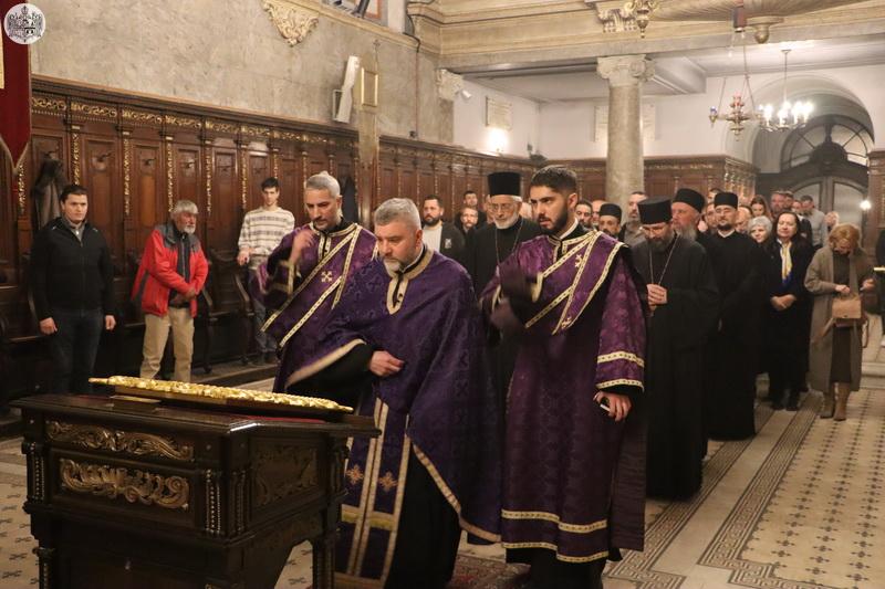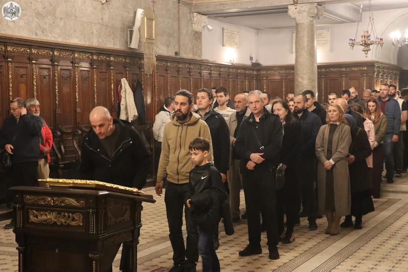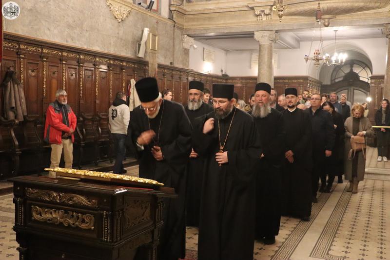 На Велики четвртак, 27. марта/9. априлa 2026. године, у Саборном храму Светог великомученика Георгија у Новом Саду служено је јутрење Великог петка, током којег је прочитано дванаест одељака из светог Јеванђеља о страдањима Господа Исуса Христа.