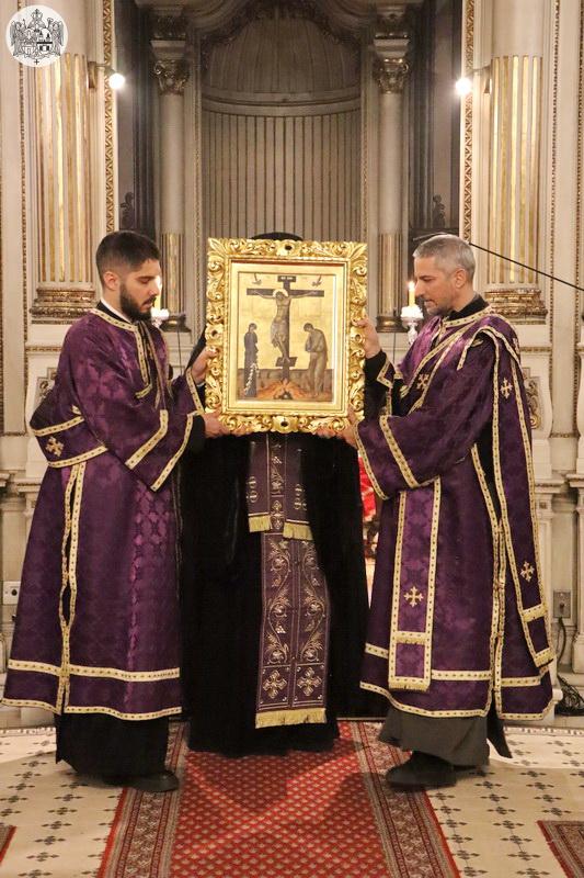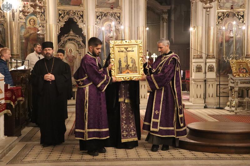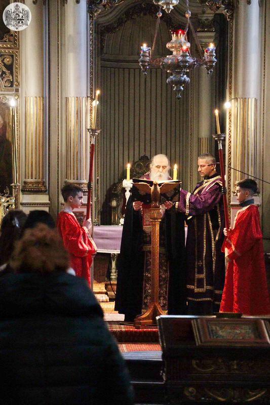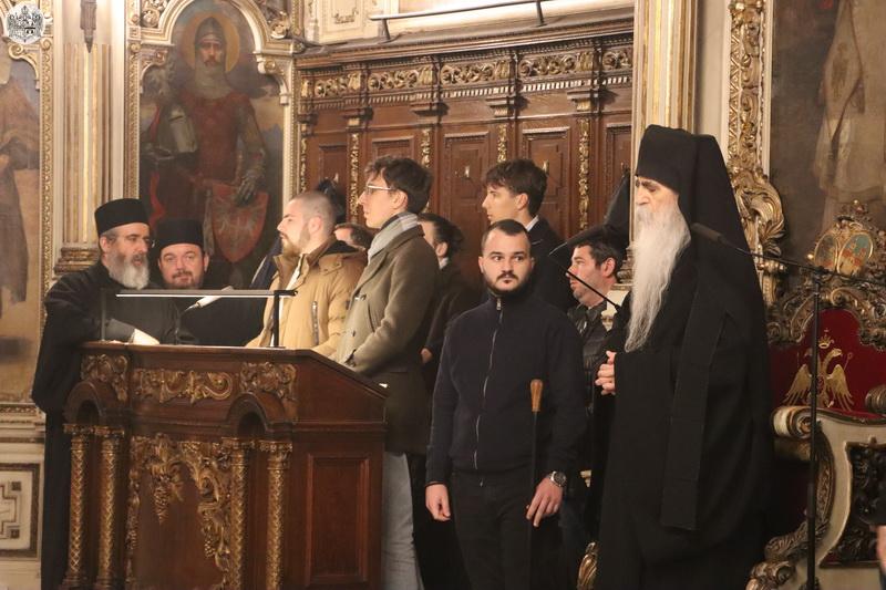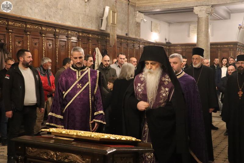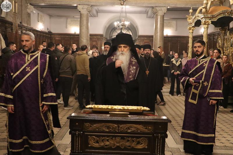 Његово Високопреосвештенство Митрополит бачки господин др Иринеј је прочитао први јеванђелски одељак, као и дванаести, у којем је описан догађај запечаћења гроба у који је положено тело Христово. Јеванђелска зачала о спасоносним страдањима Господа Исуса Христа читали су и свештеници и ђакони Саборног храма у Новом Саду.
