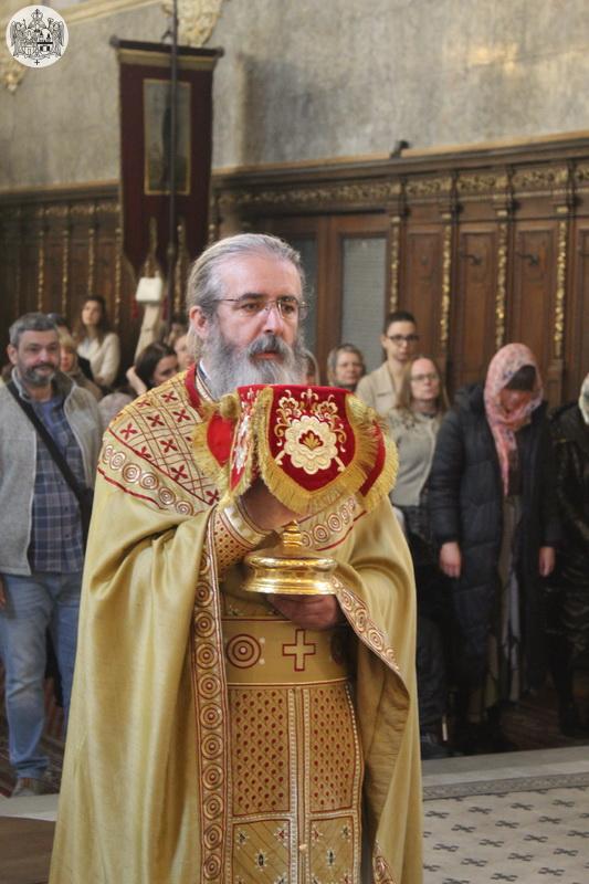 На Велики четвртак, 27. марта/9. априлa 2026. године, на светој архијерејској Литургији у Саборном храму у Новом Саду началствовао је Његово Високопреосвештенство Митрополит бачки др Иринеј. Саслуживали су Његово Преосвештенство Епископ мохачки г. Дамаскин, свештеници Саборног храма и новосадски ђакони.