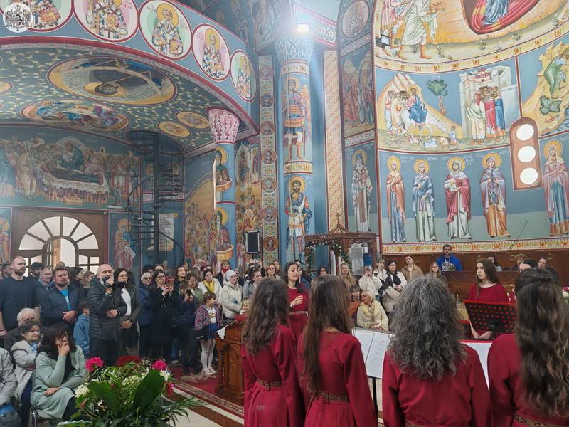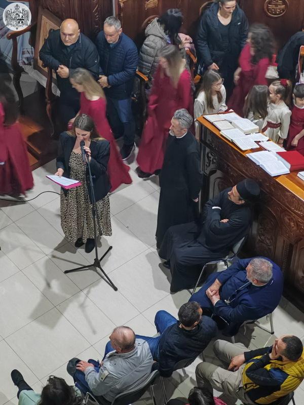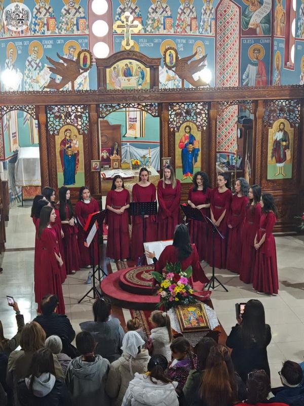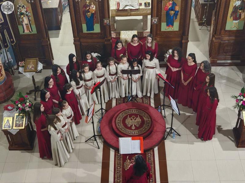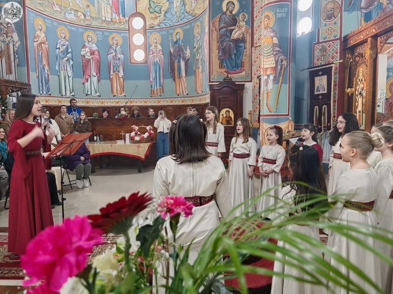 Концерт је отпочео наступом млађе групе хора којом је дириговала Јана Савић, чланица старије групе. То је истовремено био и први пут да су се чланови млађе хорске групе, основане у новембру 2025. године, представили публици. Чланови старије групе, под руководством госпође Невене Шкрбић, која већ скоро пет година са великом љубављу и трудом обликује рад хора, уз огромну вољу и прегалаштво чланова, пред пуним храмом су извели низ богослужбених и духовних песама, као и сплет песама из богате традиције српског народа.