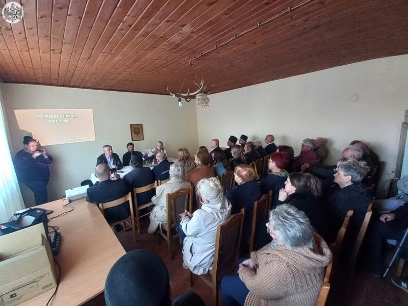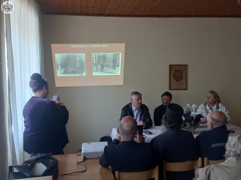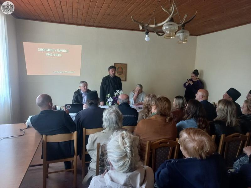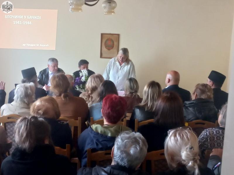Потом је, у дворани библиотеке у Бођанима, господин др Предраг Вајагић, професор историје, представио зборник радова Злочини у Бачкој 1941 – 1944. године и одржао предавање на истоимену тему. На почетку предавања, сабране је поздравио протојереј Милан Узуров, надлежни парох. У току предавања, присутни су имали прилику да погледају оригиналне фотографије и документа са подацима свих невино пострадалиж жртава.