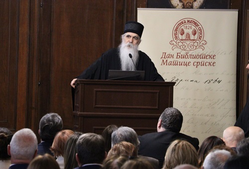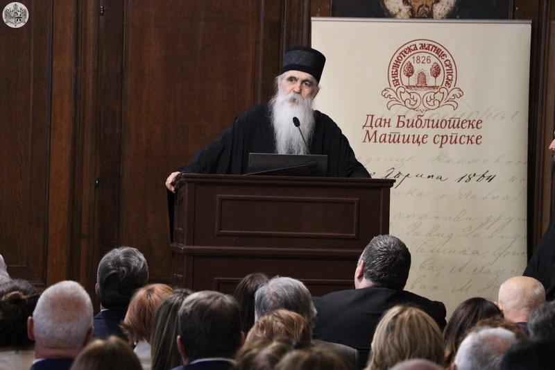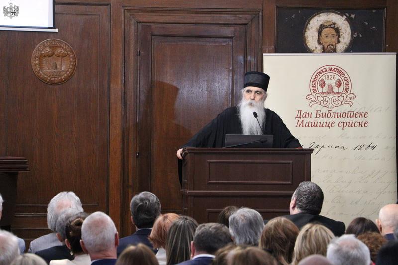 У наставку свечаности Његово Високопреосвештенство Митрополит бачки господин др Иринеј је благословио скуп и упутио присутнима поздравне речи: „Као епископу овога града и ове епархије, поверена ми је част и дужност да Вас данас поздравим и пренесем благослов наше Цркве и своје скромне добре молитвене жеље за рад како Матице српске у целини тако и њене Библиотеке, јер Матица српска је најстарија установа науке, књижевности, уметности и културе у нашем народу, а Библиотека Матице српске је најстарија, најугледнија и вероватно најбогатија библиотека од свих наших библиотекаˮ, поручио је, између осталог, у поздравном обраћању Високопреосвећени митрополит Иринеј.