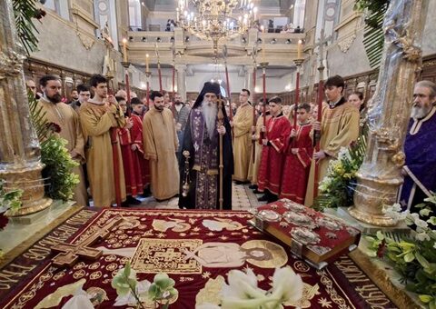 На празник Уласка Господа Исуса Христа у Јерусалим – Цвети, 23. марта/5. априла 2026. године, на светој архијерејској Литургији у Саборном храму у Новом Саду…