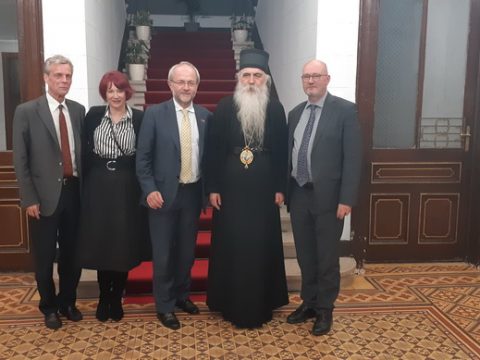 ВЛАДИКА ИРИНЕЈ ПРИМИО ПОСЛАНИКА БУНДЕСТАГА ВОЛКМАРА КЛАЈНА И ДЕЛЕГАЦИЈУ ФОНДАЦИЈЕ КОНРАД АДЕНАУЕР