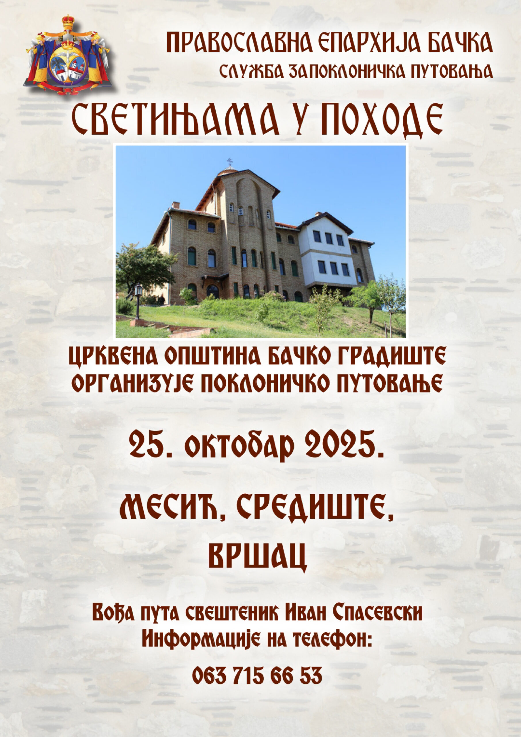 Информације о поклоничким путовањима можете добити путем бројева телефона: 021/526-068 и 064/129-36-16.