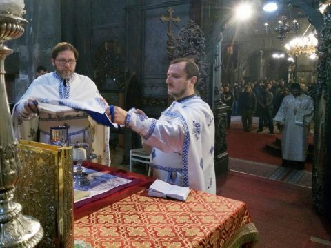 Протонамесник Бранислав Шијачић началствовао је на светој Литургији у недељу, 8. децембра 2019. године, у храму Светога великомученика Георгија у Сомбору, уз саслужење протонамесника Саве Николића, архијерејског намесника сомборског, и ђакона Александра Верића.
