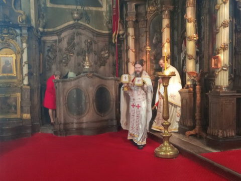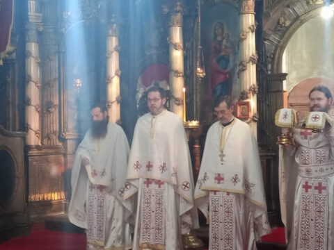 У недељу 21. по Педесетници, 1/14. новембра 2021. године, када наша света Црква прославља свете бесребренике и чудотворце Козму и Дамјана, у храму Рођења Светог Јована Претече у Сомбору, светом Литургијом је началствовао јеромонах Игнатије Шестаков, сабрат Сретенског манастира у Москви, уз саслужење сомборских свештеника: протојереја-ставрофора Славка Обрадова, протојереја Срђана Перића и протонамесника Саве Николића, архијерејског намесника сомборског.