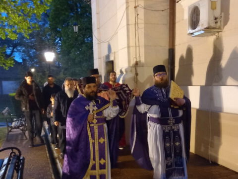 На Велики петак, 9/22. априла 2022. године, у Световазнесењском храму у Суботици, вечерње Великог петка је служио протојереј Душан Ђукић, архијерејски намесник суботички, уз саслужење братства храма. Током службе изнешена је плаштаница на гроб Христов. После вечерњег, одслужено је мало повечерје на коме је отпојан канон Распећа Христовог (Плач Мајке Божје).
