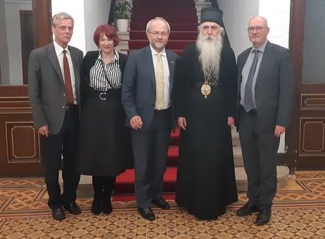 Његово Преосвештенство Епископ новосадски и бачки господин др Иринеј угостио је у четвртак, 10. октобра 2019. године, у Владичанском двору у Новом Саду, г. Волкмара Клајна, посланика Бундестага. Састанку су присуствовали и господин Норберт Бекман-Диркес, директор Фондације Конрад Аденауер (Konrad-Adenauer-Stiftung, KAS) у Србији, господин Слободан Поповић, преводилац и госпођа Гордана Пилиповић из Фондације.