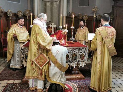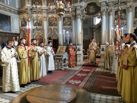 Његово Преосвештенство Епископ бачки г. Иринеј служио је свету архијерејску Литургију у Светогеоргијевском храму у Новом Саду, у недељу, 27. октобра 2019. године, на празник Преподобне мати Параскеве. Владици су саслуживали свештеници при наведеном храму, као и новосадски ђакони.